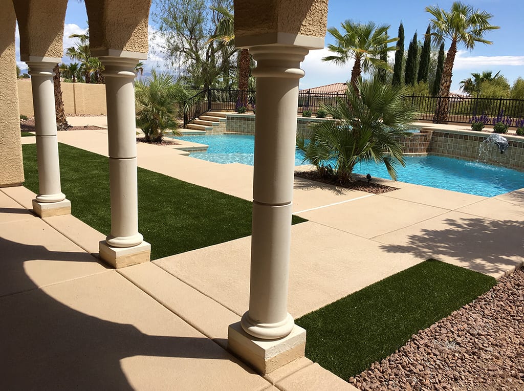 This private residence in Las Vegas, Nevada has a truly picturesque backyard with high end, expert landscaping and a gorgeous pool. The only thing that was missing was a comfortable, natural surface for their dogs to play and do their business. ForeverLawn was called upon to install K9Grass® in parts of the backyard to integrate and accent its beautiful features. Now whether the dogs are going potty or drying off from a swim in the pool, the K9Grass drains efficiently and stays fresh.