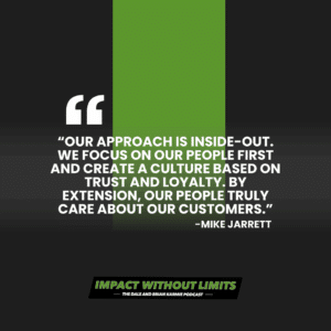 Mike also shares his own entrepreneurial path with Jarrett Logistics. Tune in this week to learn how his continual pursuit of excellence and “people first” culture focus has led him to become a person of impact and help others do the same.